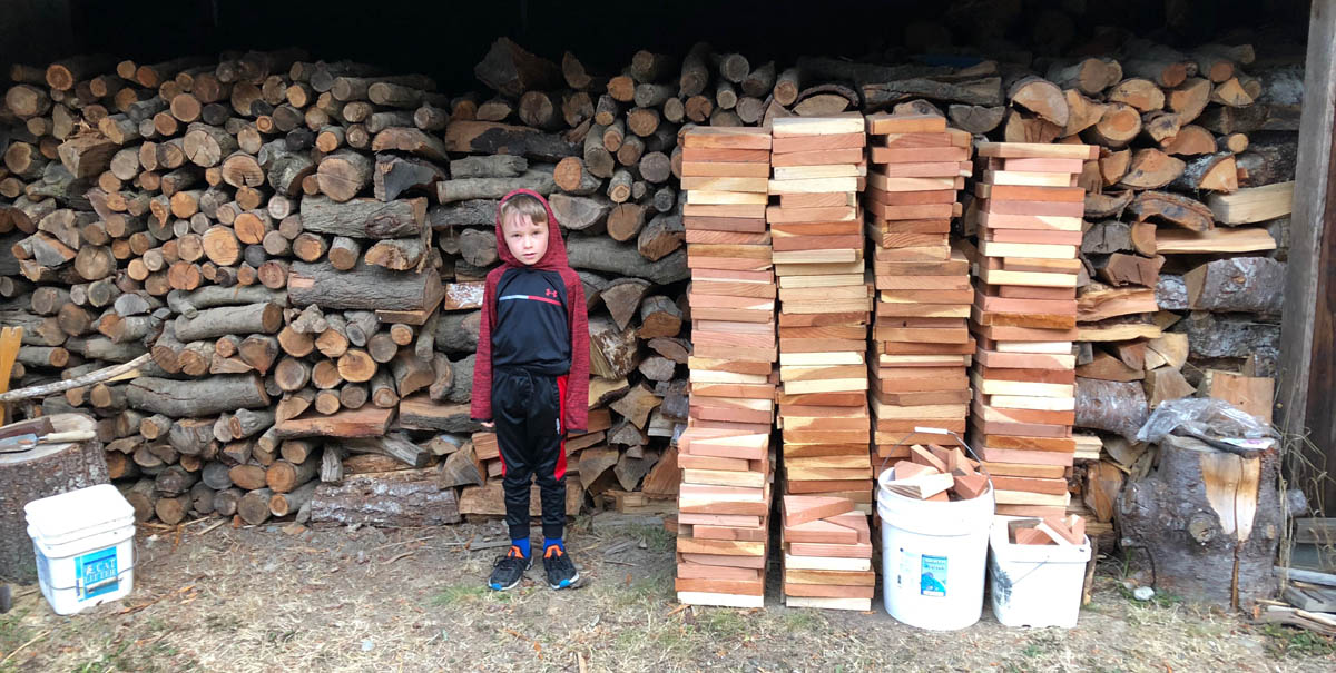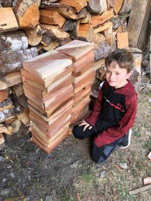 - Looking at the kindling, alone. If it takes TWO pieces to start a fire, how many fires can be started with the small mill ends?