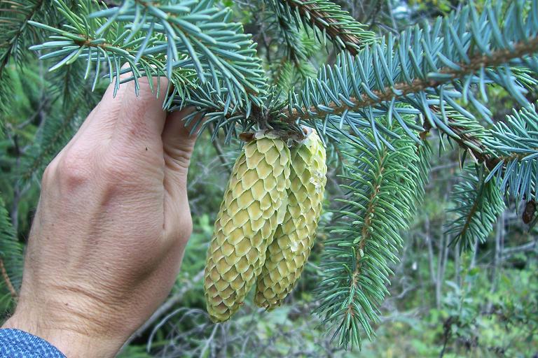 A conifer is a kind of plant that does not produce a flower to make a seed. Instead most conifers produce a cone where the seed is protected. Some types of conifers you may have heard of are pines, firs, spruces, and of course redwoods.